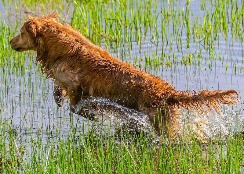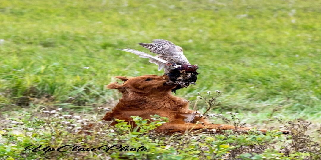 Ben is a hard running guy known for his fantastic water entries, They just have to be as flamboyant as possible, no one hits the water like Ben. He has a very high prey drive, fast and focused. He is a strong marking athlete with natural hunting abilities, and the ability to carry straight lines over various terrains. Ben has lots of heart, a desire to please and an excellent nose. Ben has a well balanced athletic body and a lovely head with a soft expression. He is an affectionate, loyal team member. He excels in the duck blind and pheasant hunting.